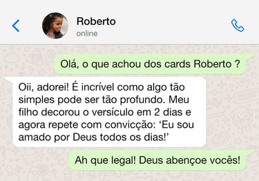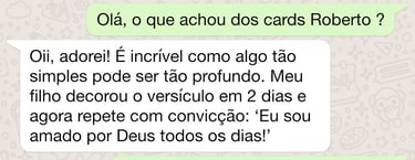 São cartinhas ilustradas com frases bíblicas positivas, versículos e pequenas orações, criadas para fortalecer a identidade cristã das crianças e cultivar momentos de fé em família.